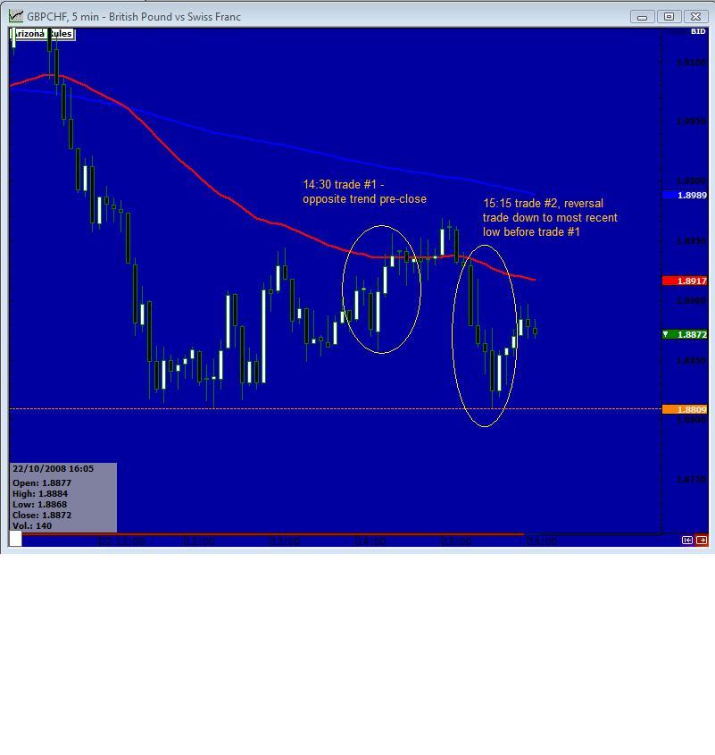 GBPCHF 1500 market close trade 22Oct08 5M